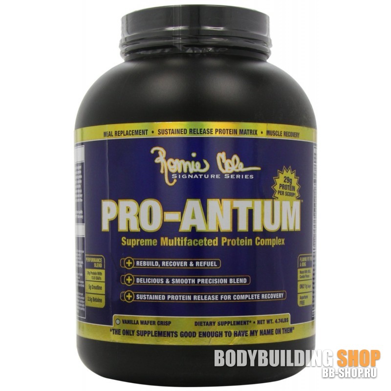 Вы можете купить Pro-Antium (2,55кг) в магазинах BODYBUILDING SHOP города Жуковский по низкой цене. Ronnie Coleman\ Протеин многокомпонентный Pro-Antium (2,55кг): описание, фото, состав, отзывы покупателей, инструкция по применению.